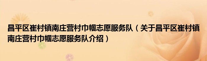 关于昌平区崔村镇南庄营村巾帼志愿服务队到此分享完毕,希望能帮助到您。