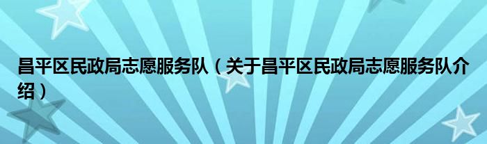 关于昌平区民政局志愿服务队到此分享完毕,希望能帮助到您。