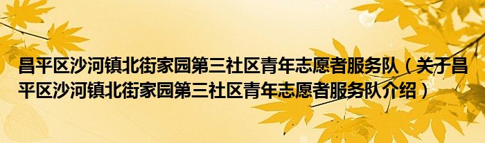 关于昌平区沙河镇北街家园第三社区青年志愿者服务队到此分享完毕,希望能帮助到您。