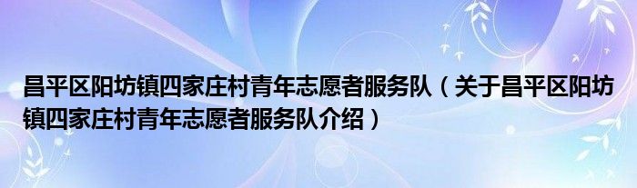 关于昌平区阳坊镇四家庄村青年志愿者服务队到此分享完毕,希望能帮助到您。