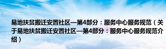 关于易地扶贫搬迁安置社区—第4部分:服务中心服务规范到此分享完毕,希望能帮助到您。