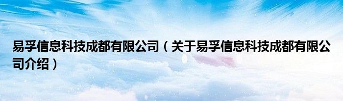 大家好,小夏来为大家解答以上的问题。易孚信息科技成都有限公司,关于易孚信息科技成都有限公司介绍这个很多人还不知道,现在让我们一起来看看吧!