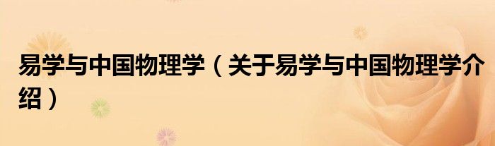 关于易学与中国物理学到此分享完毕,希望能帮助到您。