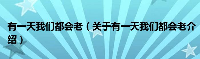 大家好,小夏来为大家解答以上的问题。有一天我们都会老,关于有一天我们都会老介绍这个很多人还不知道,现在让我们一起来看看吧!