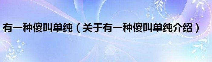 大家好,小夏来为大家解答以上的问题。有一种傻叫单纯,关于有一种傻叫单纯介绍这个很多人还不知道,现在让我们一起来看看吧!