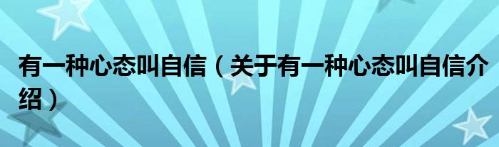 大家好,小夏来为大家解答以上的问题。有一种心态叫自信,关于有一种心态叫自信介绍这个很多人还不知道,现在让我们一起来看看吧!