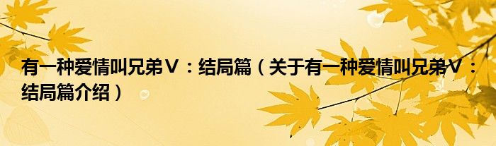 关于有一种爱情叫兄弟Ⅴ:结局篇到此分享完毕,希望能帮助到您。