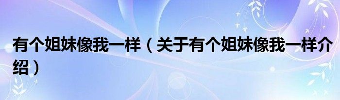 大家好,小夏来为大家解答以上的问题。有个姐妹像我一样,关于有个姐妹像我一样介绍这个很多人还不知道,现在让我们一起来看看吧!