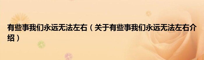 大家好,小夏来为大家解答以上的问题。有些事我们永远无法左右,关于有些事我们永远无法左右介绍这个很多人还不知道,现在让我们一起来看看吧!