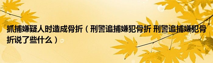 大家好,我是小小根,我来为大家解答以上问题。抓捕嫌疑人时造成骨折,刑警追捕嫌犯骨折 刑警追捕嫌犯骨折说了些什么很多人还不知道,现在让我们一起来看看吧!