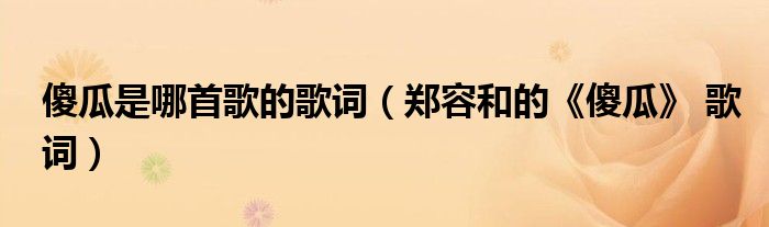 大家好,我是小小根,我来为大家解答以上问题。傻瓜是哪首歌的歌词,郑容和的《傻瓜》 歌词很多人还不知道,现在让我们一起来看看吧!