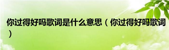 大家好,小豆来为大家解答以上的问题。你过得好吗歌词是什么意思,你过得好吗歌词这个很多人还不知道,现在让我们一起来看看吧!