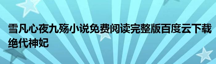 大家好,小式来为大家解答以上的问题。雪凡心夜九殇小说免费阅读完整版百度云下载绝代神妃这个很多人还不知道,现在让我们一起来看看吧!