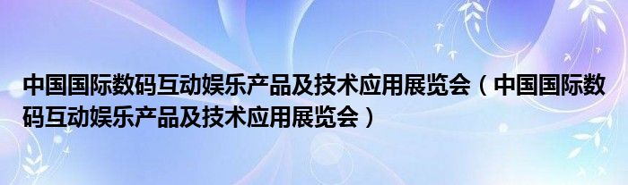 大家好,小式来为大家解答以上的问题。中国国际数码互动娱乐产品及技术应用展览会,中国国际数码互动娱乐产品及技术应用展览会这个很多人还不知道,现在让我们一起来看看吧!