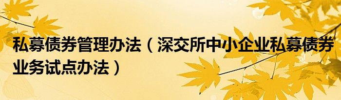 大家好,小式来为大家解答以上的问题。私募债券管理办法,深交所中小企业私募债券业务试点办法这个很多人还不知道,现在让我们一起来看看吧!