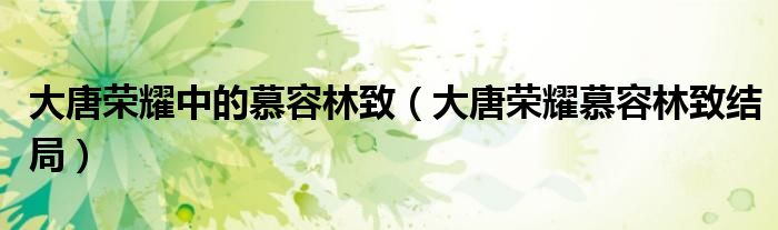 大家好,小式来为大家解答以上的问题。大唐荣耀中的慕容林致,大唐荣耀慕容林致结局这个很多人还不知道,现在让我们一起来看看吧!