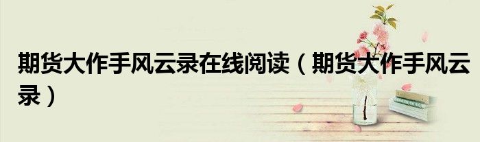 大家好,小式来为大家解答以上的问题。期货大作手风云录在线阅读,期货大作手风云录这个很多人还不知道,现在让我们一起来看看吧!