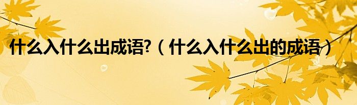 大家好,小式来为大家解答以上的问题。什么入什么出成语?,什么入什么出的成语这个很多人还不知道,现在让我们一起来看看吧!