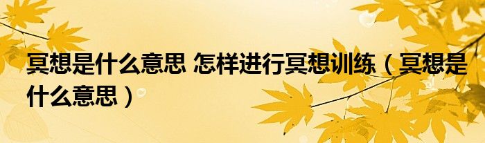 11、冥想(meditation)是国外翻译过来的一个单词,在英文里,它指的是禅修的意思,是瑜伽实现入定的一项技法和途径,把心、意、灵完全专注在原始之初之中;最终目的在于把人引导到解脱的境界。