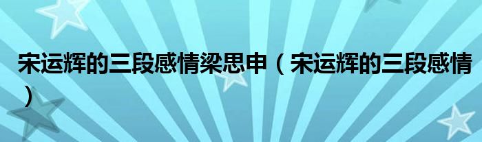 大家好,小式来为大家解答以上的问题。宋运辉的三段感情梁思申,宋运辉的三段感情这个很多人还不知道,现在让我们一起来看看吧!