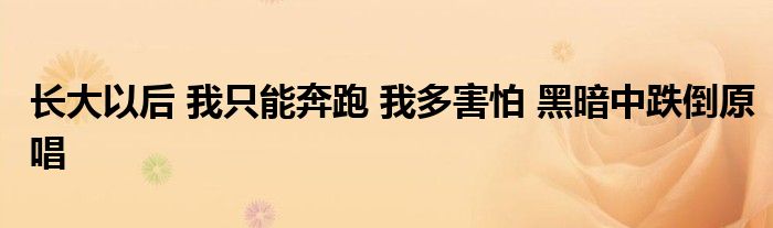 大家好,小式来为大家解答以上的问题。长大以后 我只能奔跑 我多害怕 黑暗中跌倒原唱这个很多人还不知道,现在让我们一起来看看吧!