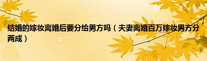 大家好,小式来为大家解答以上的问题。结婚的嫁妆离婚后要分给男方吗,夫妻离婚百万嫁妆男方分两成这个很多人还不知道,现在让我们一起来看看吧!