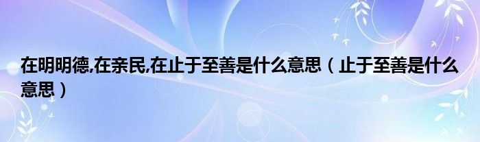 大家好,小式来为大家解答以上的问题。在明明德,在亲民,在止于至善是什么意思,止于至善是什么意思这个很多人还不知道,现在让我们一起来看看吧!