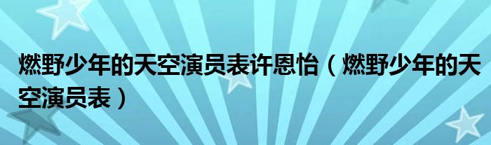 大家好,小式来为大家解答以上的问题。燃野少年的天空演员表许恩怡,燃野少年的天空演员表这个很多人还不知道,现在让我们一起来看看吧!