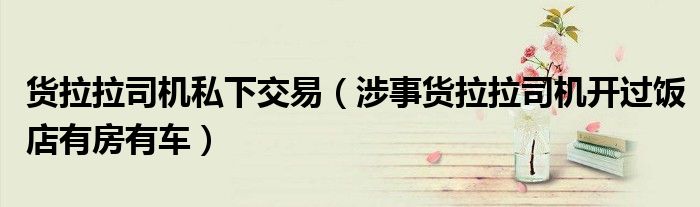 大家好,小式来为大家解答以上的问题。货拉拉司机私下交易,涉事货拉拉司机开过饭店有房有车这个很多人还不知道,现在让我们一起来看看吧!