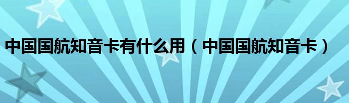 大家好,小式来为大家解答以上的问题。中国国航知音卡有什么用,中国国航知音卡这个很多人还不知道,现在让我们一起来看看吧!