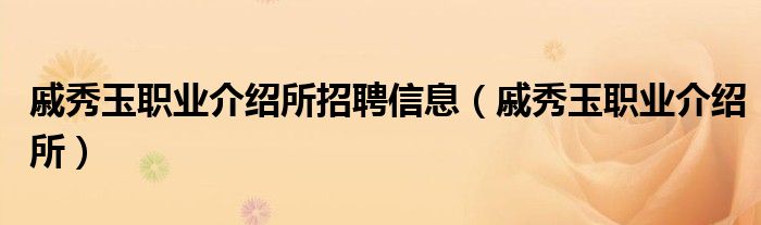 大家好,小式来为大家解答以上的问题。戚秀玉职业介绍所招聘信息,戚秀玉职业介绍所这个很多人还不知道,现在让我们一起来看看吧!