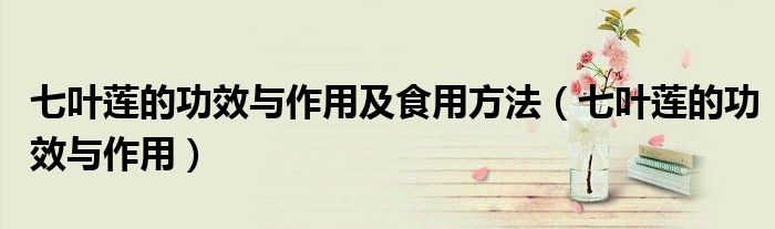3、下面一起来看看七叶莲的养殖方法及功效作用吧!七叶莲的养殖方法选择土壤。