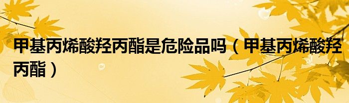 大家好,小式来为大家解答以上的问题。甲基丙烯酸羟丙酯是危险品吗,甲基丙烯酸羟丙酯这个很多人还不知道,现在让我们一起来看看吧!