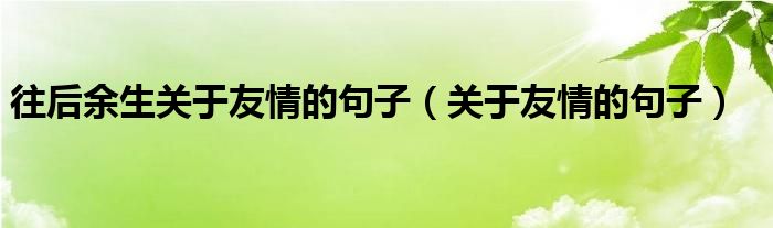 大家好,小式来为大家解答以上的问题。往后余生关于友情的句子,关于友情的句子这个很多人还不知道,现在让我们一起来看看吧!