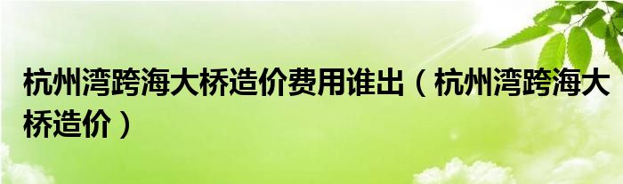大家好,小式来为大家解答以上的问题。杭州湾跨海大桥造价费用谁出,杭州湾跨海大桥造价这个很多人还不知道,现在让我们一起来看看吧!