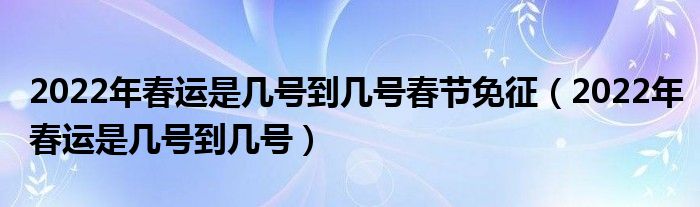 大家好,小式来为大家解答以上的问题。2022年春运是几号到几号春节免征,2022年春运是几号到几号这个很多人还不知道,现在让我们一起来看看吧!