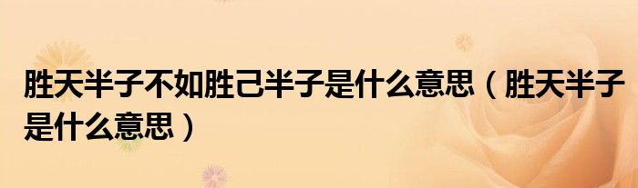 大家好,小式来为大家解答以上的问题。胜天半子不如胜己半子是什么意思,胜天半子是什么意思这个很多人还不知道,现在让我们一起来看看吧!