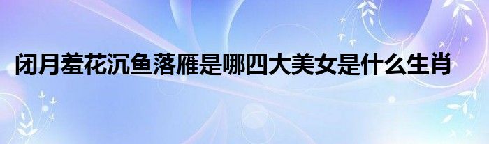大家好,小式来为大家解答以上的问题。闭月羞花沉鱼落雁是哪四大美女是什么生肖这个很多人还不知道,现在让我们一起来看看吧!