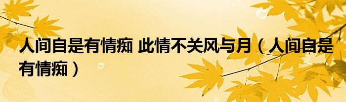 大家好,小式来为大家解答以上的问题。人间自是有情痴 此情不关风与月,人间自是有情痴这个很多人还不知道,现在让我们一起来看看吧!