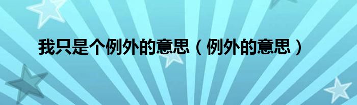 大家好,小式来为大家解答以上的问题。我只是个例外的意思,例外的意思这个很多人还不知道,现在让我们一起来看看吧!