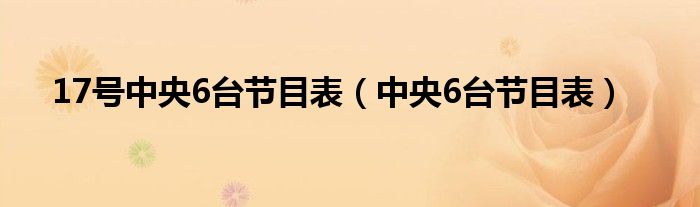 大家好,小式来为大家解答以上的问题。17号中央6台节目表,中央6台节目表这个很多人还不知道,现在让我们一起来看看吧!