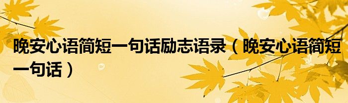 大家好,小式来为大家解答以上的问题。晚安心语简短一句话励志语录,晚安心语简短一句话这个很多人还不知道,现在让我们一起来看看吧!