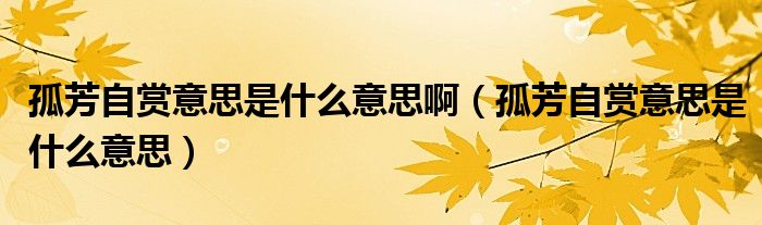 大家好,小式来为大家解答以上的问题。孤芳自赏意思是什么意思啊,孤芳自赏意思是什么意思这个很多人还不知道,现在让我们一起来看看吧!