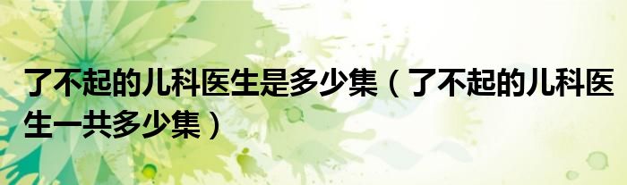 大家好,小式来为大家解答以上的问题。了不起的儿科医生是多少集,了不起的儿科医生一共多少集这个很多人还不知道,现在让我们一起来看看吧!