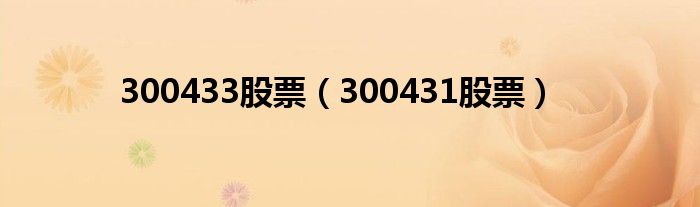 大家好,小式来为大家解答以上的问题。300433股票,300431股票这个很多人还不知道,现在让我们一起来看看吧!