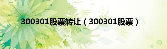 大家好,小式来为大家解答以上的问题。300301股票转让,300301股票这个很多人还不知道,现在让我们一起来看看吧!