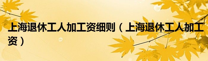 大家好,小式来为大家解答以上的问题。上海退休工人加工资细则,上海退休工人加工资这个很多人还不知道,现在让我们一起来看看吧!