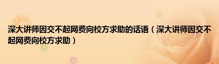 大家好,小式来为大家解答以上的问题。深大讲师因交不起网费向校方求助的话语,深大讲师因交不起网费向校方求助这个很多人还不知道,现在让我们一起来看看吧!
