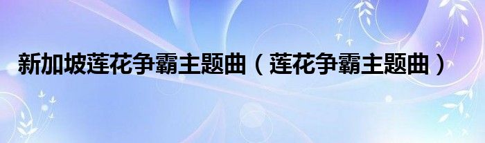 大家好,小式来为大家解答以上的问题。新加坡莲花争霸主题曲,莲花争霸主题曲这个很多人还不知道,现在让我们一起来看看吧!