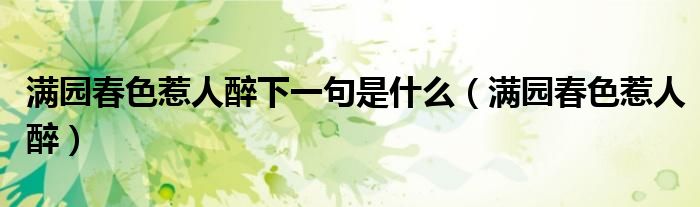 大家好,小式来为大家解答以上的问题。满园春色惹人醉下一句是什么,满园春色惹人醉这个很多人还不知道,现在让我们一起来看看吧!